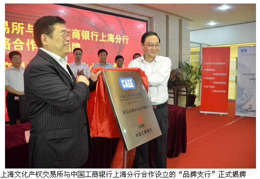揭牌仪式上,中国工商银行上海分行与上海文化产权交易所签署金融合作协议,共同开发以品牌无形资产质押融资为基础的一系列创新金融产品。上海市品牌建设工作联席会议办公室宣布首批43家企业估值超过300亿元的品牌资产进入上海文交所品牌交易中心和品牌支行。