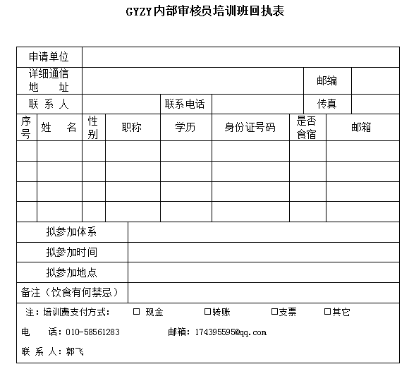 请拟参加培训班人员请以电子邮件或传真方式将报名表传达我方,报名时需携带本人身份证、1寸彩色照片。