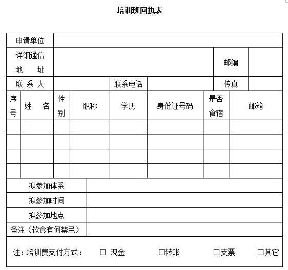 请参加本次培训的人员,填写好回执后与培训相关工作人员联系。