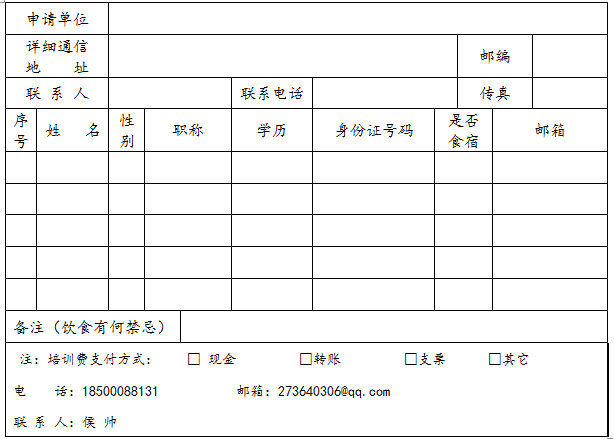 请拟参加培训班人员请以电子邮件或传真方式将报名表传达我方,报名时需携带本人身份证、1寸彩色照片2张。我中心根据反馈情况统筹安排,并培训班开始之前一周通过QQ、邮箱、电话等方式向您函发正式上课通知,报到时间、地点将在正式报到通知中说明。