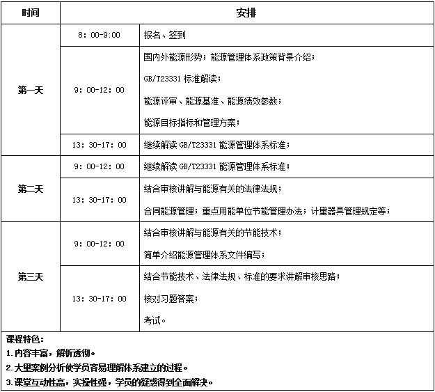 帮助学员全面系统的掌握能源管理体系标准的内容,成为一名合格的内审员的同时可以提升竞争优势,成为前沿的能源管理高级人才。掌握建立能源管理体系和管理机制寻找低成本或无成本的节能方法和能源管理措施。