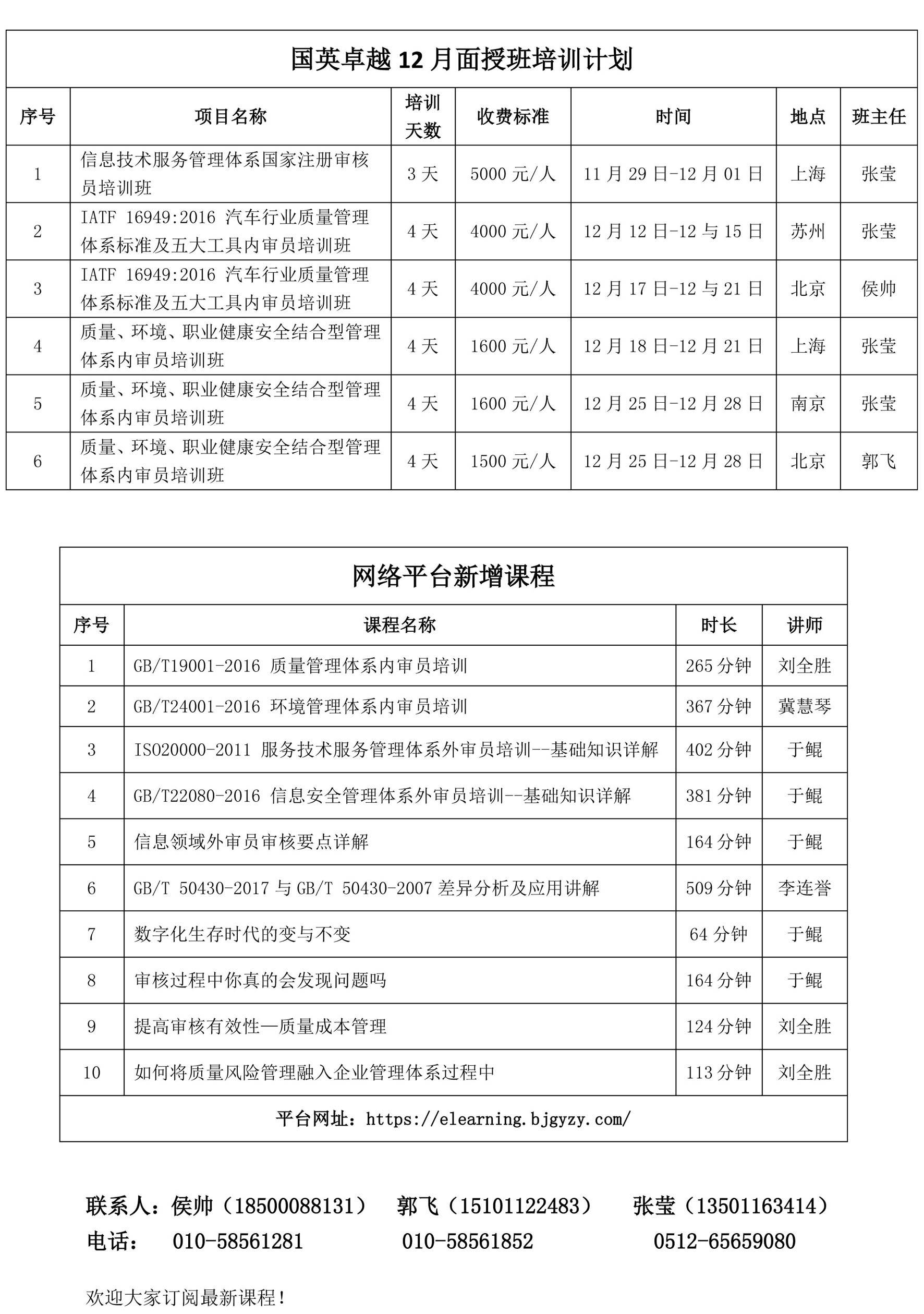 国英卓越12月培训计划