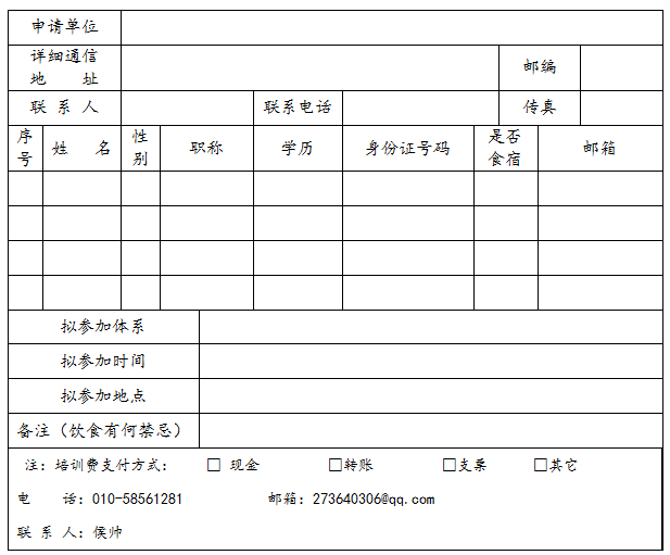 拟参加培训班人员、请将学员报名回执于培训班开班前传真或邮件至下述地址,以便确认参加培训,报名时需携带本人身份证。