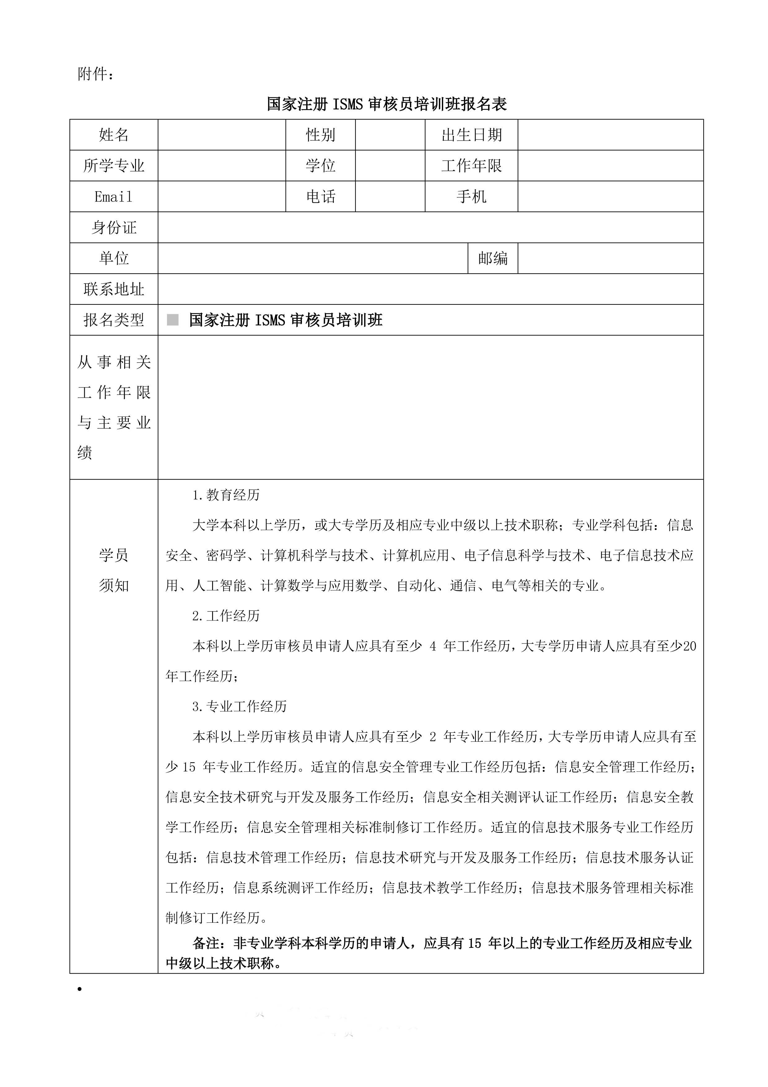 新世纪检验认证股份有限公司与北京国英卓越技术教育科技有限公司将在2017年3月联合举办“信息安全管理体系(ISMS)国家注册审核员培训班”,由北京国英卓越技术教育科技有限公司组织,邀请信息安全管理体系领域知名专家授课,培训学员可以统一参加2017年3月中国认证认可协会(CCAA)组织的国家注册审核员考试;考试合格后的学员由新世纪检验认证股份有限公司提供审核员注册及审核员实习服务,相关事宜通知如下: