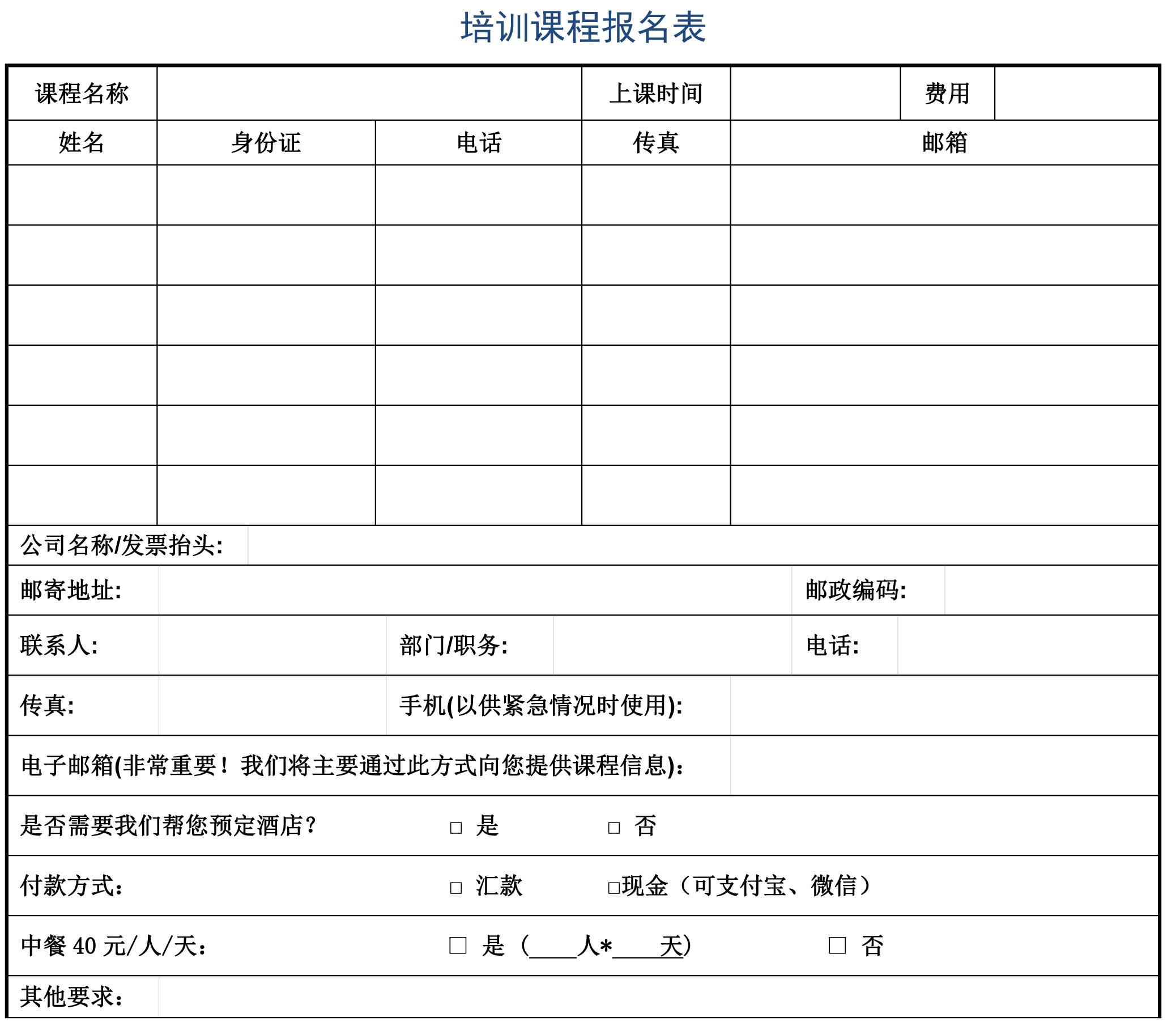 请拟参加培训班人员请以电子邮件或传真方式将报名表传达我方,报名时需携带本人身份证、1寸彩色照片。