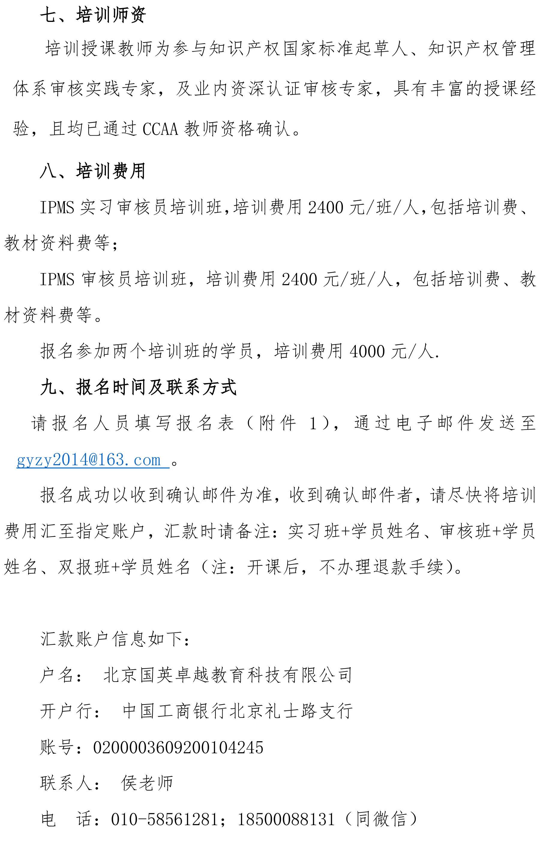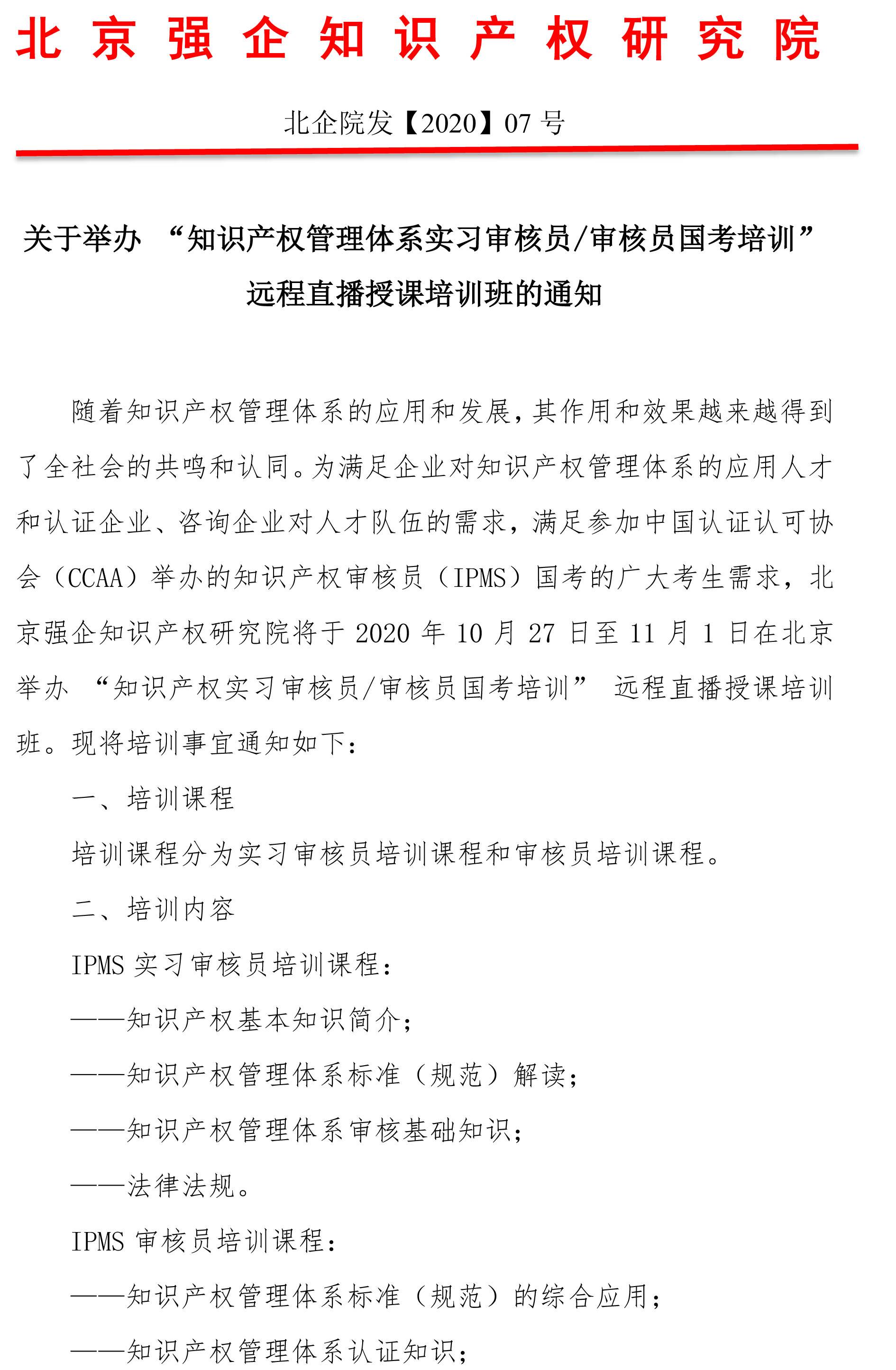 关于举办 “知识产权管理体系实习/审核员国考 培训 ” 远程直播授课训班
