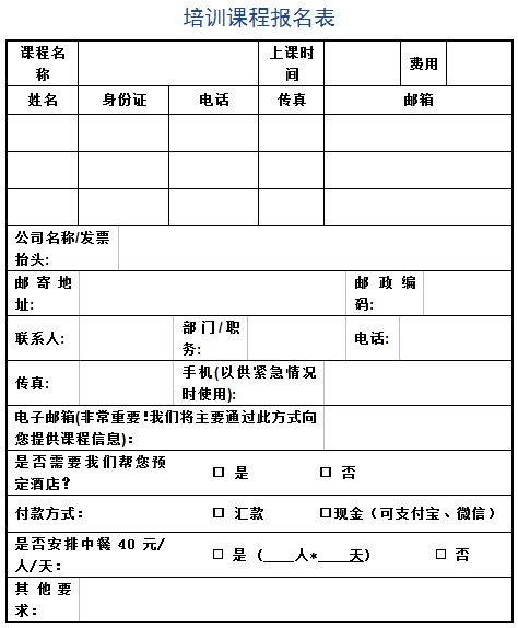 请拟参加培训班人员请以电子邮件或传真方式将报名表传达我方,报名时需携带本人身份证、1寸彩色照片。