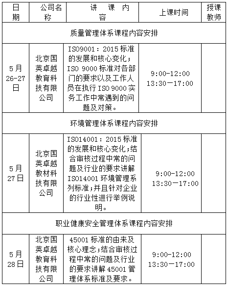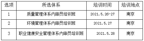 欢迎您参加2021年第二季度南京地区 “新版质量、环境、安全管理体系内部审核员”培训班,现将报到时间、地点及相关事宜通知您,望收到后回复确认。