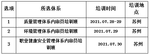 欢迎您参加2021年第三季度苏州地区 “新版质量、环境、职业健康安全管理体系内部审核员”培训班,现将报到时间、地点及相关事宜通知您,望收到后回复确认。