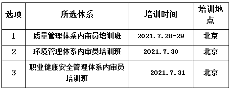 两体系培训费:1500元/人 (质量与环境、质量与安全、环境与安全)