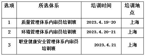 两体系培训费:1500元/人 (质量与环境、质量与安全、环境与安全)