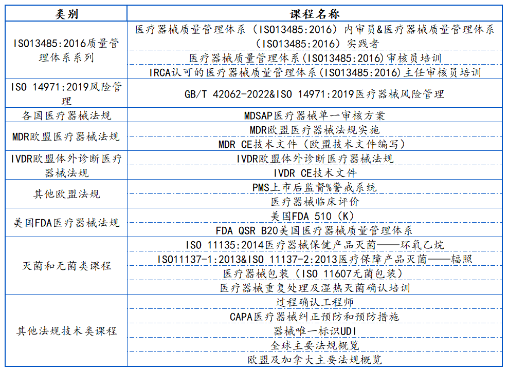 更多医疗器械课程请看目录