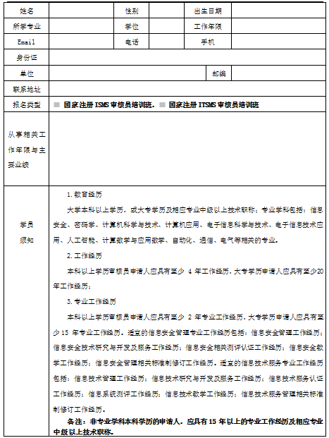 北京新世纪检验认证股份有限公司与北京国英卓越教育科技有限公司将在2017年8月联合举办“信息安全管理体系(ISMS)国家注册审核员联合培训班”,由北京国英卓越教育科技有限公司组织,邀请信息安全管理体系领域知名专家授课,培训学员可以统一参加中国认证认可协会(CCAA)组织的国家注册审核员考试;考试合格后的学员由北京新世纪检验认证股份有限公司提供审核员注册及审核员实习服务,相关事宜通知如下: